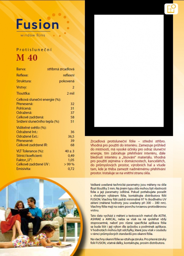 Interiérové (vnitřní) protisluneční fólie FUSION